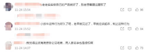 有些網(wǎng)友則支持海底撈起訴小放牛餐飲,并認為小放牛應(yīng)該老老實實做自己的品牌,而是不是蹭海底撈的流量。