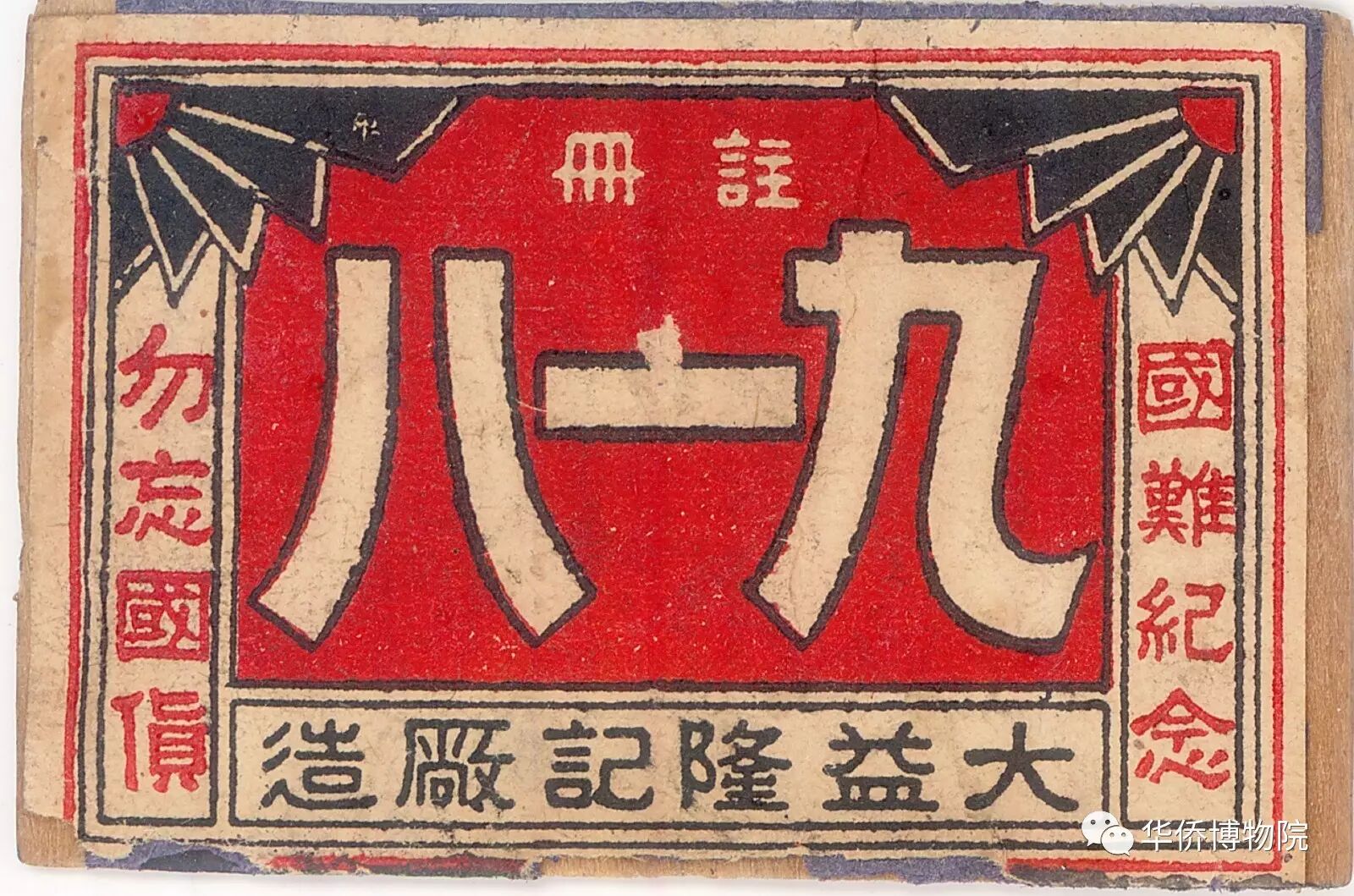 左:1937年南洋出品“九一八•國(guó)難紀(jì)念勿忘國(guó)貨”火花