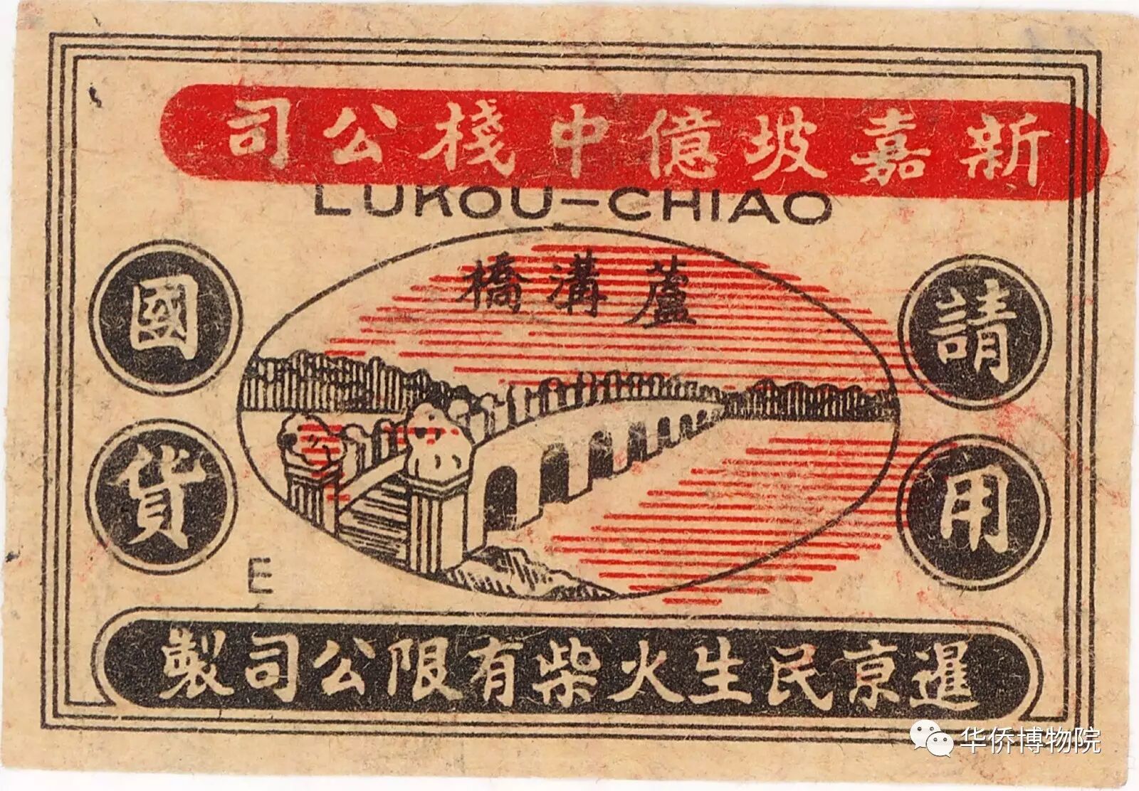 左:1937年新加坡億中棧公司“請(qǐng)用國(guó)貨”盧溝橋火花
