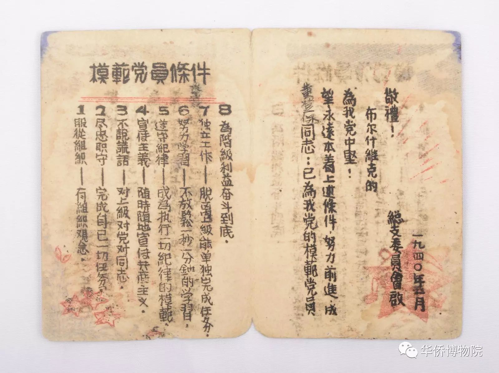 1940年歸僑將軍黃登保的模范黨員證書(shū)