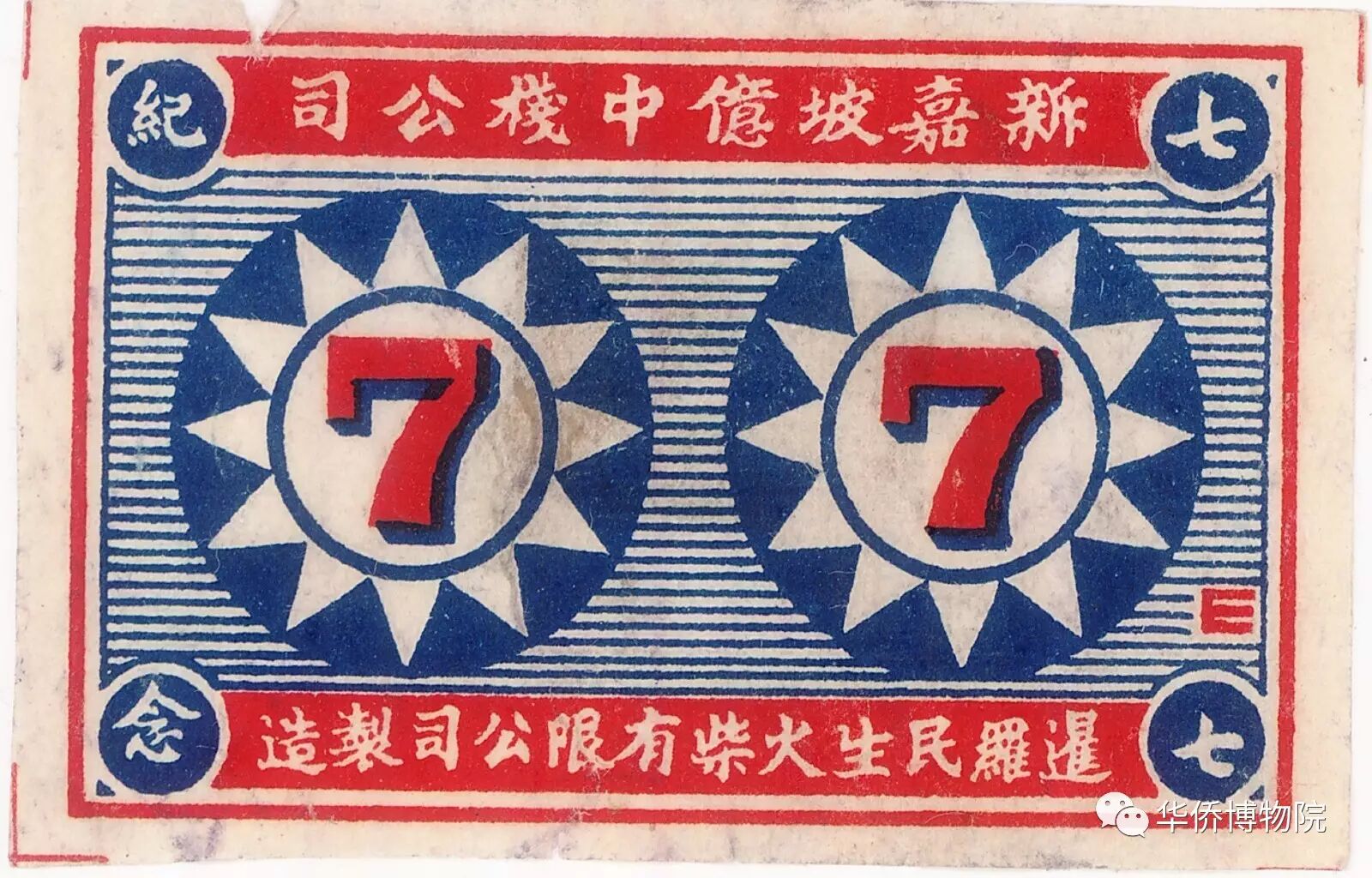 右:1937年新加坡億中棧公司“七七紀(jì)念”火花