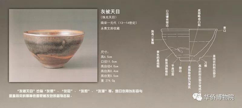 按日本的名碗確定的排名:曜變、油滴、建盞、灰被、玳皮盞、雜天目,可見“灰被天目”在日本茶道具中占有重要地位,其獨(dú)具特色的與眾不同的美質(zhì),深受日本人喜愛,而成為舉世珍寶。
