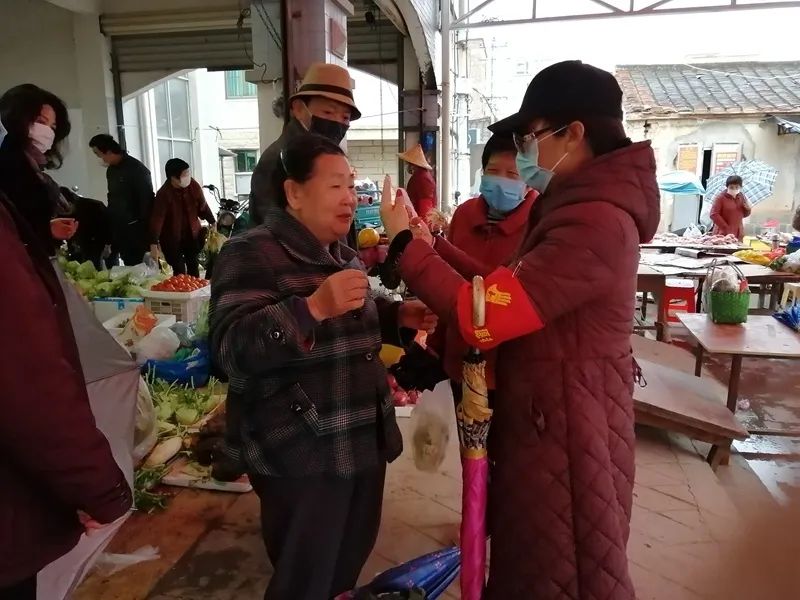 廈門同安車鼓弄傳承人林明卿參與防控志愿服務(wù),為社區(qū)民眾戴口罩