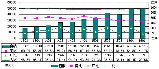 京東2016年第一季度來(lái)自于服務(wù)項(xiàng)目與其他項(xiàng)目的凈收入同比增長(zhǎng)91%,增長(zhǎng)動(dòng)力主要來(lái)自快速擴(kuò)張的京東商城第三方開放平臺(tái)業(yè)務(wù),廣告服務(wù)以及向第三方商家提供的物流服務(wù)。