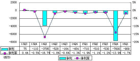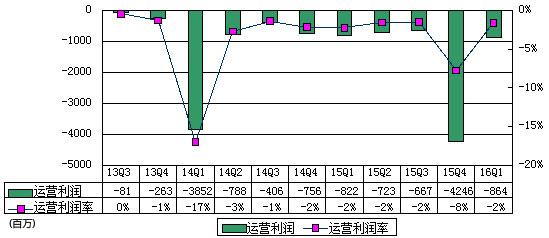 2016年第一季度非美國(guó)通用會(huì)計(jì)準(zhǔn)則下(Non-GAAP)息稅折舊攤銷前利潤(rùn)率為0.4%。2015年第一季度非美國(guó)通用會(huì)計(jì)準(zhǔn)則下(Non-GAAP)息稅折舊攤銷前利潤(rùn)率為-0.2%。