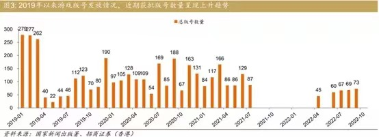 國(guó)產(chǎn)游戲版號(hào)近年來(lái)審批數(shù)量統(tǒng)計(jì)來(lái)源:招商證券研報(bào)