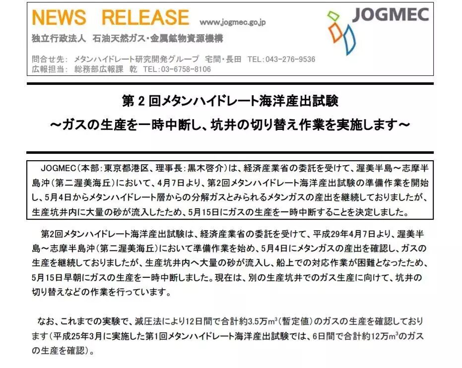 而根據(jù)外媒的報(bào)道,就在今年5月4日,日本人則重新開始了第二次嘗試,并于當(dāng)日再次成功產(chǎn)氣。但這次嘗試已經(jīng)在5月15日早些時(shí)候被迫中斷,原因同樣鉆井通道一直有泥沙灌入,不斷在干擾開采工作。最終他們在6天的時(shí)間里從開采的可燃冰中提取了12萬方的天然氣。