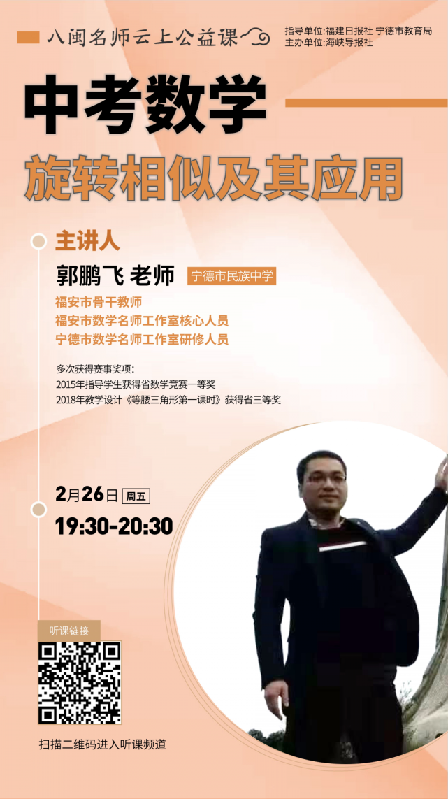 郭鵬飛老師是福安市骨干教師,福安市數(shù)學(xué)名師工作室核心人員,寧德市數(shù)學(xué)名師工作室研修人員;于2015年指導(dǎo)學(xué)生獲得省數(shù)學(xué)競賽一等獎;于2018年教學(xué)設(shè)計《等腰三角形第一課時》獲得省三等獎,兩次參與寧德市期末命卷工作。