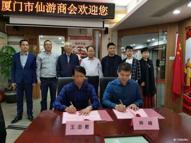 在雙方與會人員的共同見證下,廈門市南安商會執(zhí)行會長王志敏、廈門市仙游商會值班會長林峰分別代表各自所在商會在“兄弟商會戰(zhàn)略合作協(xié)議書”上簽字。
