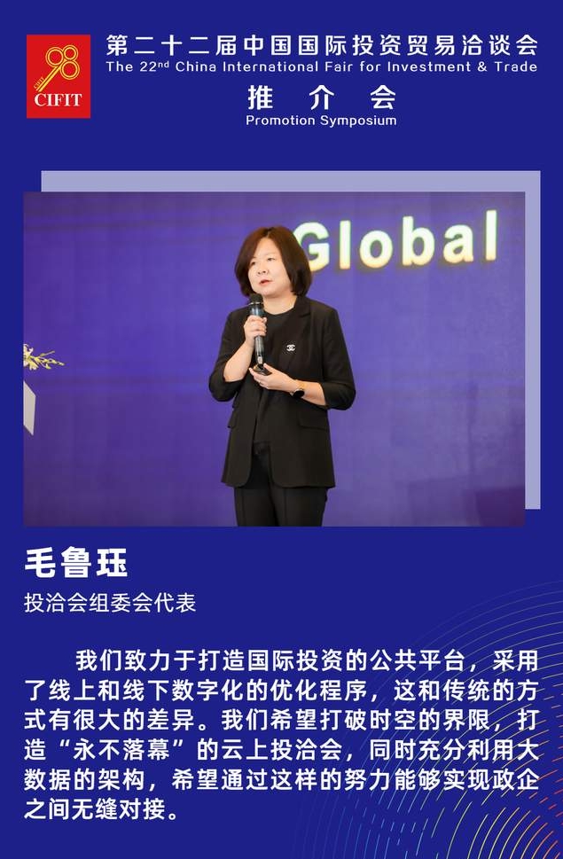 據(jù)介紹,本屆投洽會(huì)于9月8日至11日在廈門舉辦。大會(huì)以“全球發(fā)展:共享數(shù)字機(jī)遇 投資綠色未來(lái)”為主題,聚焦雙碳目標(biāo)、數(shù)字經(jīng)濟(jì)、“一帶一路”共建、金磚合作和高質(zhì)量實(shí)施RCEP協(xié)定等熱點(diǎn),舉辦2022國(guó)際投資論壇等30多場(chǎng)高端論壇研討活動(dòng),發(fā)布《中國(guó)外商投資指引(2022版)》《中國(guó)外資統(tǒng)計(jì)公報(bào)(2022)》《中國(guó)外商投資報(bào)告(2022)》《中資企業(yè)國(guó)別發(fā)展報(bào)告》等權(quán)威信息報(bào)告。