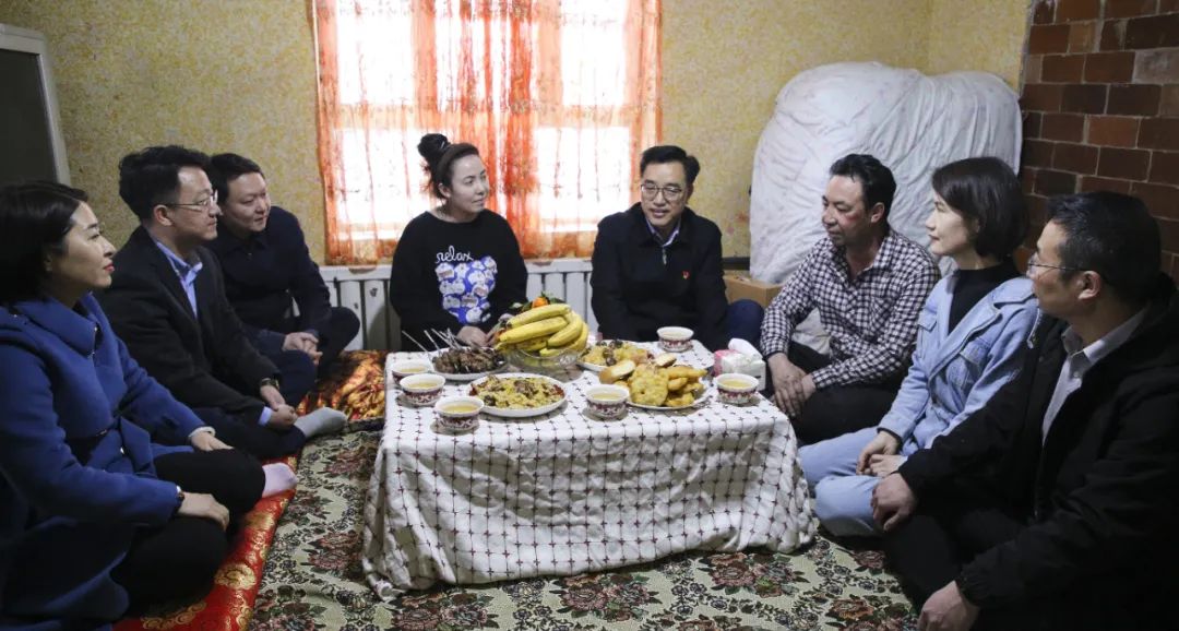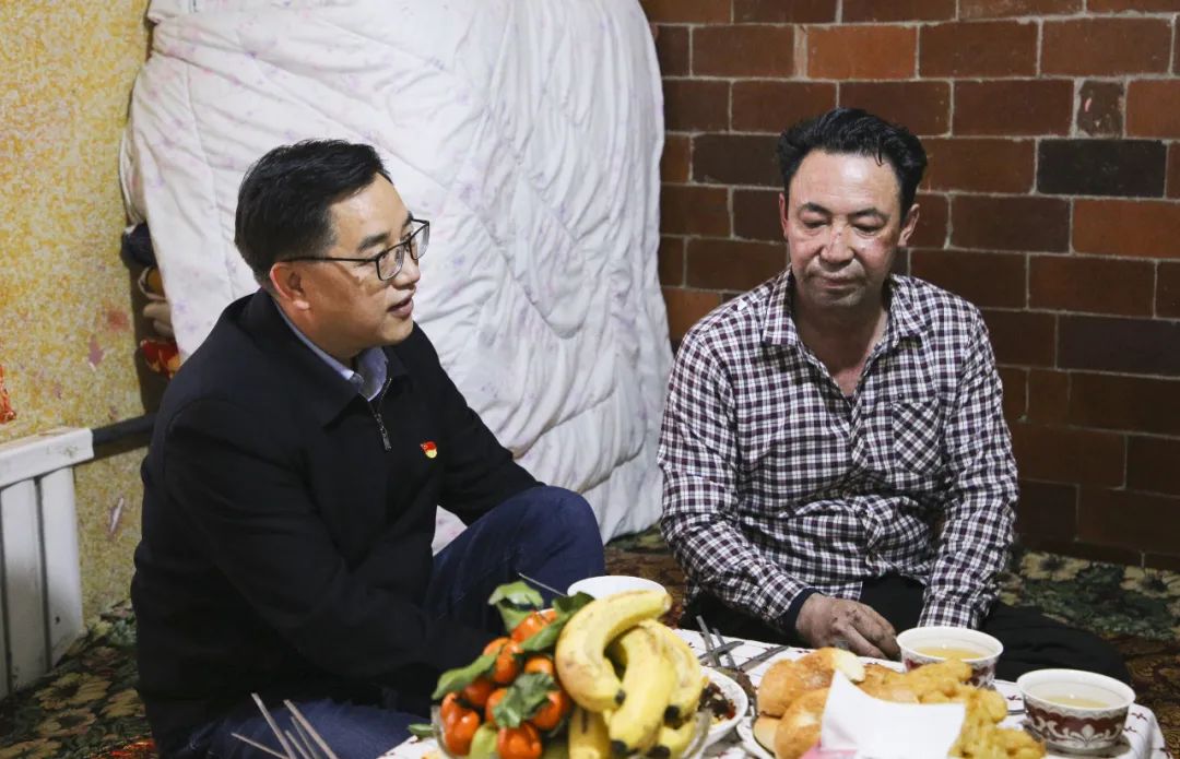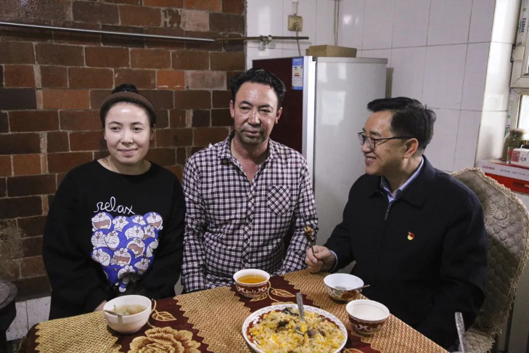 時近中午,一盤盤溫情滿滿、熱氣騰騰的羊肉串、手抓飯、餛飩湯次第端上桌,濃濃的親情伴隨著新疆美食的香味,彌漫在熱情而活潑的空氣中。大家圍坐一團(tuán),嘮家常、話團(tuán)結(jié)、聽訴求、聊約定——兩年前,周小華第一次來呼圖壁縣二十里店村探親的時候,聽說阿里木的大女兒木尼熱在首都師范大學(xué)讀書時,立刻鼓勵她積極爭取入黨。阿里木還記得當(dāng)時周小華對他說:等木尼熱入黨轉(zhuǎn)正了,我一定額外再安排一個時間來看看你們一家,我要送給她一個禮物!”深受鼓舞的木尼熱·阿里木果然沒有辜負(fù)周小華的殷切期望,在大學(xué)里,她不僅正式入了黨,還考上了研究生。當(dāng)周小華知道這些喜訊時,在電話里告訴她要繼續(xù)加油、繼續(xù)進(jìn)步、繼續(xù)前進(jìn),新年過后,他就會來村里“兌現(xiàn)”這場約定。
