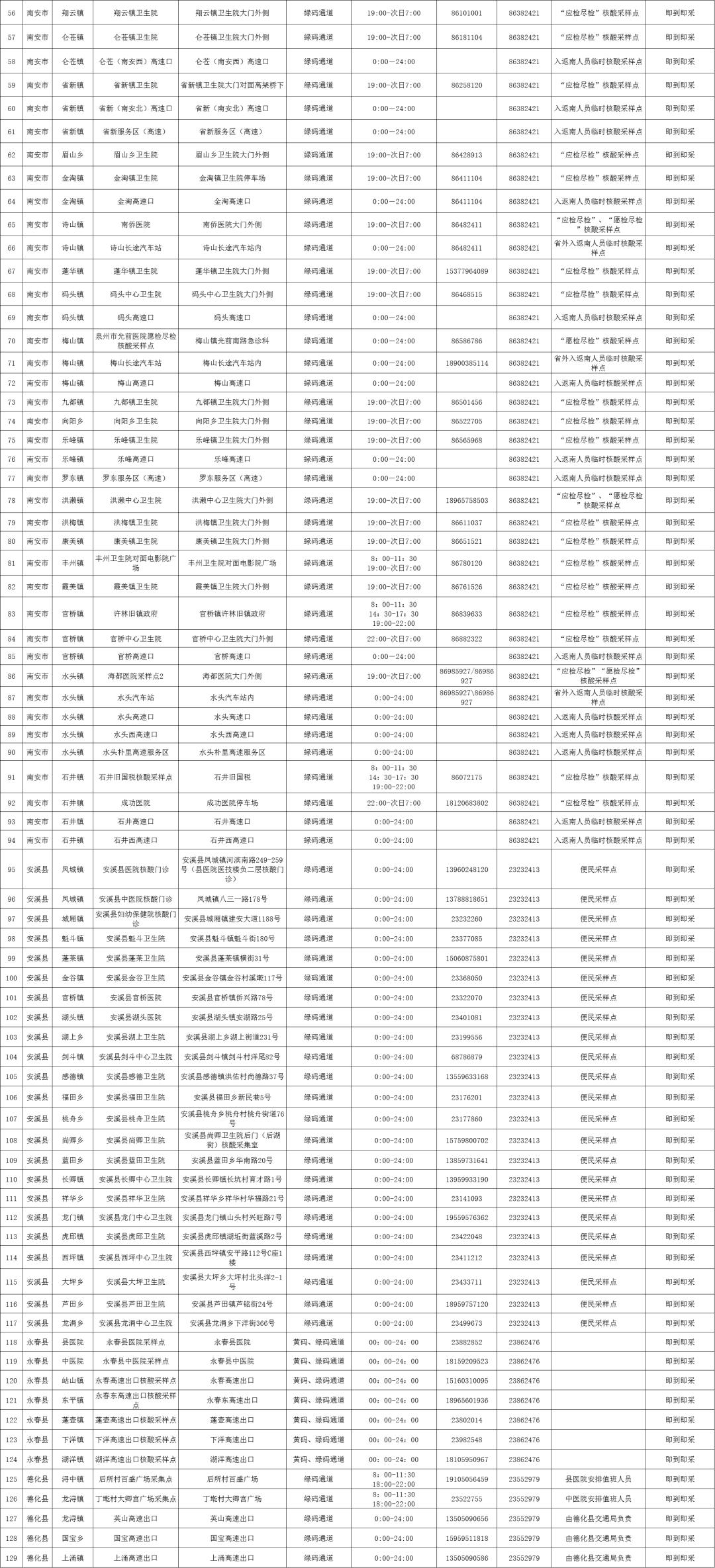 為做好常態(tài)化疫情防控工作,貫徹落實“疫情要防住、經(jīng)濟(jì)要穩(wěn)住、發(fā)展要安全”重要要求,同時讓核酸檢測服務(wù)更加便民,即日起泉州市有129個核酸采樣點提供夜間服務(wù),方便“重點人群”應(yīng)檢盡檢,具體分布情況和采樣時間詳見附表。