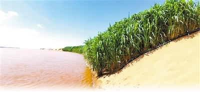 黃河內(nèi)蒙古阿拉善盟段,河岸種植的菌草起到防風固沙等作用。