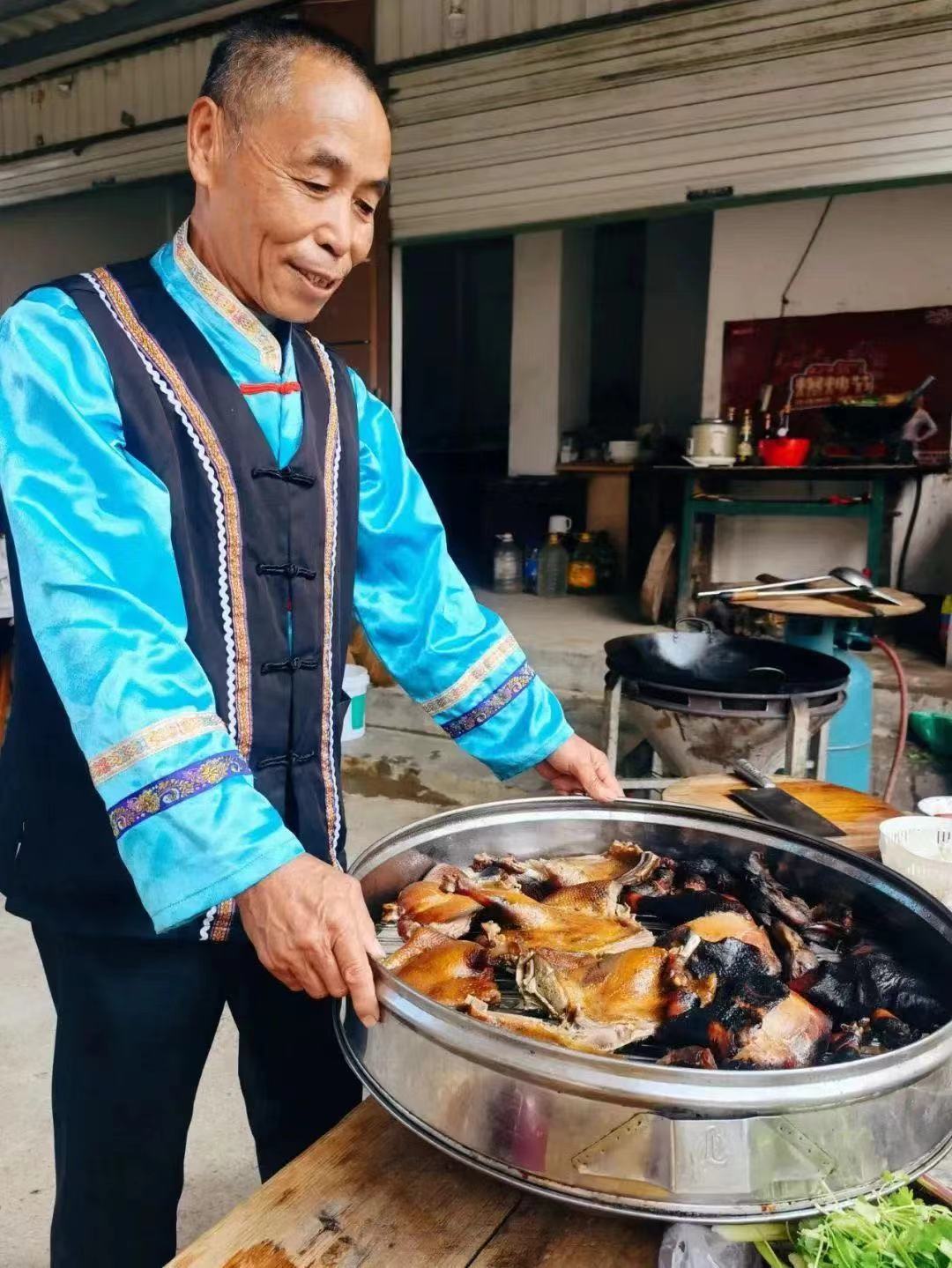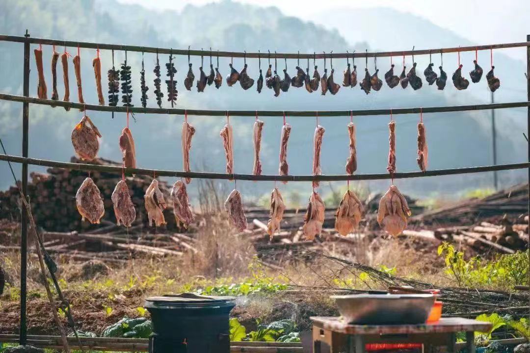 逢年過節(jié),客自遠(yuǎn)來,好客的畬族人民都會拿出臘肉招待,且以紅糯米酒相配,成為待客之味的一絕。聽著山歌,跳著舞,喝著美酒,嚼著臘肉,那一個醉意,怎一個盡興了得。
