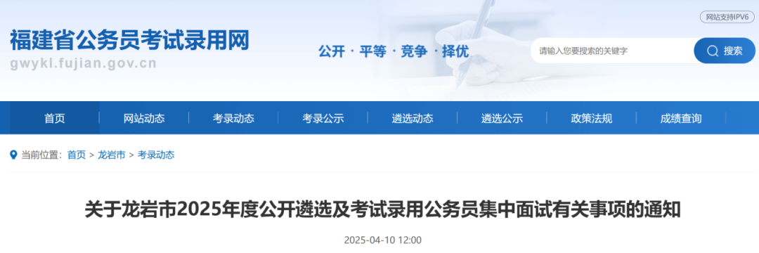 1.龍巖市直機關公開遴選面試時間為2025年4月12日上午;