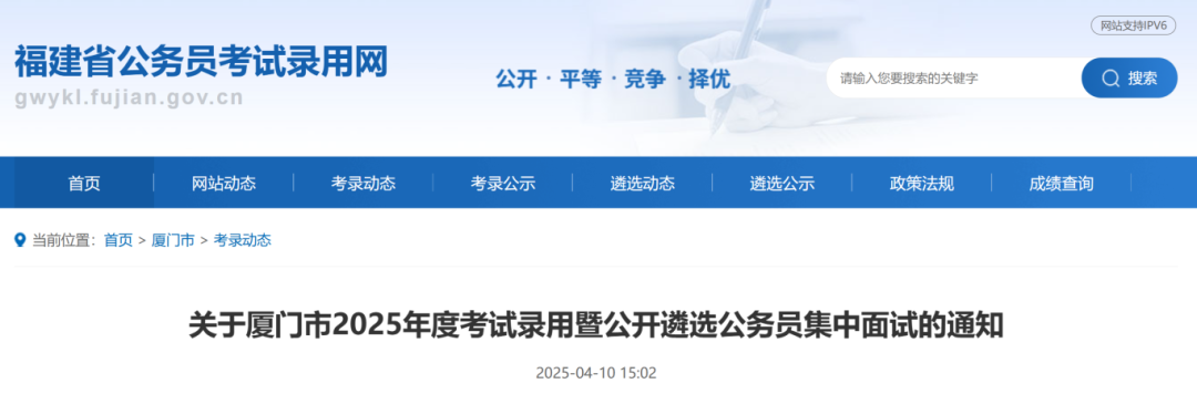 關于廈門市2025年度考試錄用暨公開遴選公務員集中面試的通知