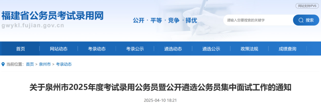 關于泉州市2025年度考試錄用公務員暨公開遴選公務員集中面試工作的通知