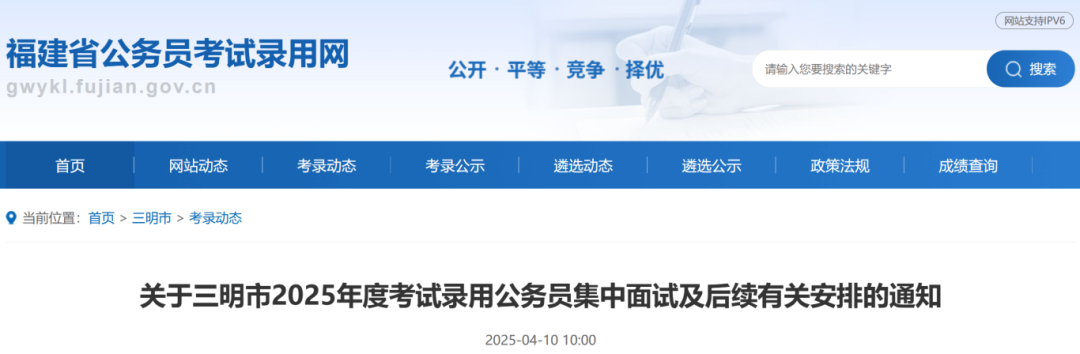 關于三明市2025年度考試錄用公務員集中面試及后續(xù)有關安排的通知