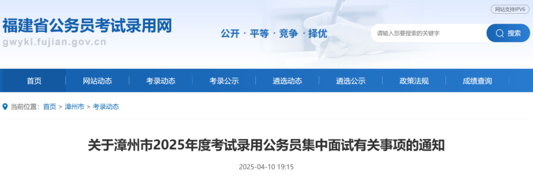 漳州市2025年度考試錄用公務員集中面試工作將于2025年4月12日至4月16日進行。