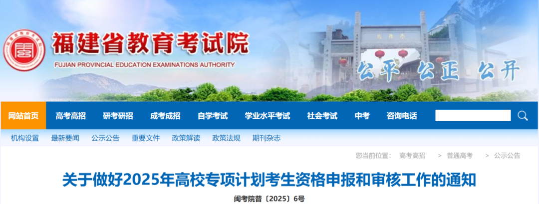 近日,福建省教育考試院發(fā)布通知,明確了高校專項計劃在福建省的實施區(qū)域及報考條件等有關事項。