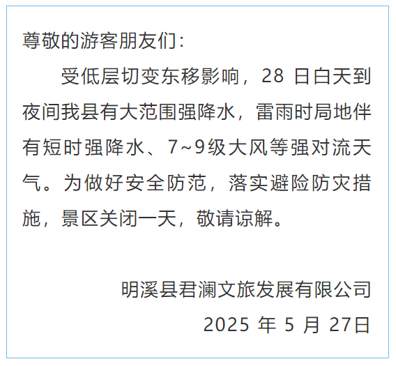 同時也提醒廣大游客、村民朋友,面臨突發(fā)天氣,請減少出行,注意防范局地強降水可能引發(fā)的山洪、泥石流、城鄉(xiāng)積澇、塌方和滑坡等次生災害,注意自身安全。