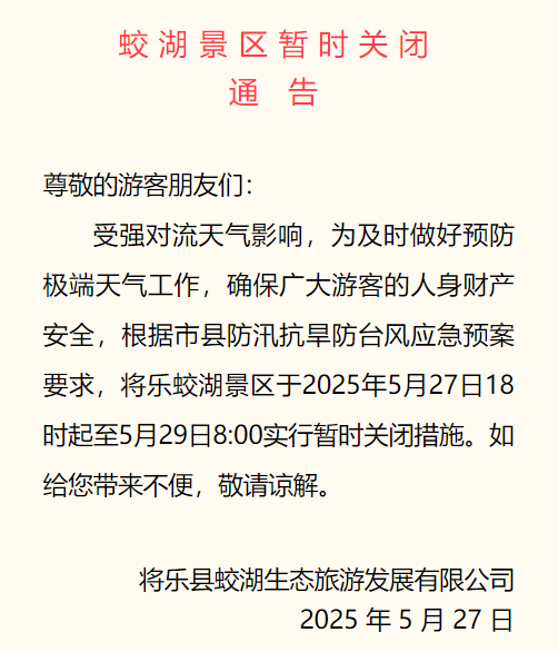 受近期強降雨影響,為確保廣大游客生命財產(chǎn)安全,江山鎮(zhèn)國家森林公園、無人村、山塘兵工廠、村美登山步道、黃連盂等景區(qū)和非景區(qū)景點暫停對外開放,請游客切勿前來游玩。