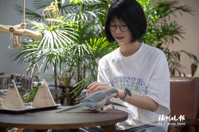 30余只毛色斑斕的鸚鵡撲棱著翅膀降落在你的咖啡杯旁,用軟萌的啁啾聲為你點(diǎn)播專屬BGM(背景音樂(lè)),一種名為“鳥(niǎo)咖”的新興業(yè)態(tài)悄然在福州出現(xiàn)。繼擼貓擼狗之后,擼鳥(niǎo)又在福州年輕人中掀起新風(fēng)潮,撬動(dòng)時(shí)下火熱的寵物經(jīng)濟(jì)消費(fèi)。