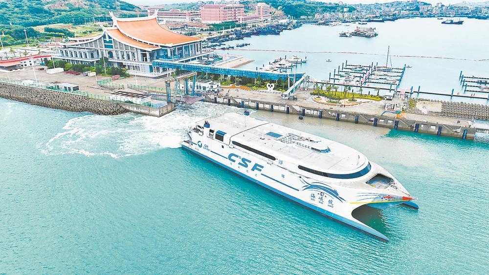 8月6日,在平潭澳前客運(yùn)滾裝碼頭,“海峽號(hào)”客滾輪運(yùn)載2個(gè)集裝箱緩緩駛離港口,這是該船時(shí)隔628天后再次穿越臺(tái)灣海峽駛向臺(tái)北港,標(biāo)志著“海峽號(hào)”再度恢復(fù)兩岸海上貨物直航運(yùn)輸。據(jù)悉,自2011年首航以來(lái),“海峽號(hào)”已累計(jì)運(yùn)送旅客近100萬(wàn)人次,運(yùn)載貨物超3.8萬(wàn)噸,先后開(kāi)通了平潭至臺(tái)中、臺(tái)北、高雄3條航線(xiàn),輻射臺(tái)灣北部、中部和南部。此次航線(xiàn)恢復(fù)后,預(yù)計(jì)每周執(zhí)行一個(gè)往返航班。(張哲昊 江信恒 攝)