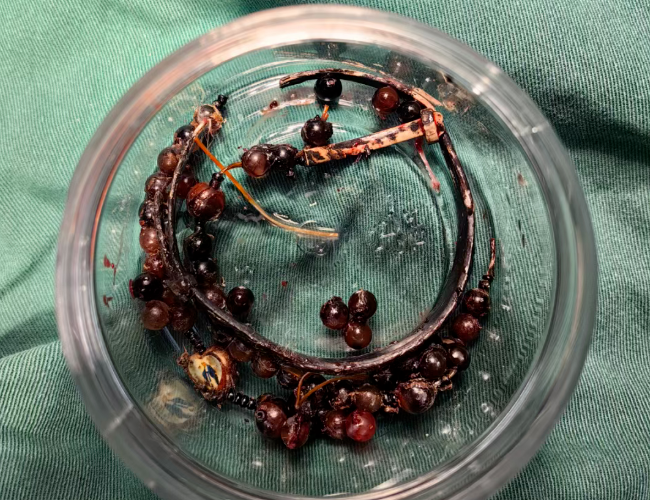 “這是典型的首飾長期壓迫、摩擦,加上細菌感染,引發(fā)的慢性炎癥和肉芽組織增生。”醫(yī)生介紹,此時,手鐲和串珠已經(jīng)成了一個不斷刺激皮膚、污染傷口的“病灶”,如果不盡快手術(shù)取出,感染可能進一步擴散,甚至危及生命或影響手臂功能。