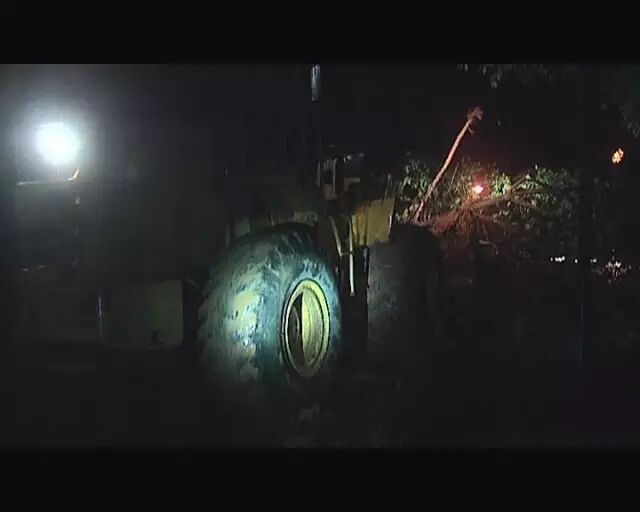 滑坡點(diǎn)不僅沖下了大量泥土,就連山邊的一些大樹也隨之倒了下來,考慮到安全問題,市政管理人員立即在道路兩邊設(shè)立了警示牌,用柴刀劈掉攔在人行道上的樹枝,并立即調(diào)來了大鏟車,鏟除堆積在道路上的泥巴。
