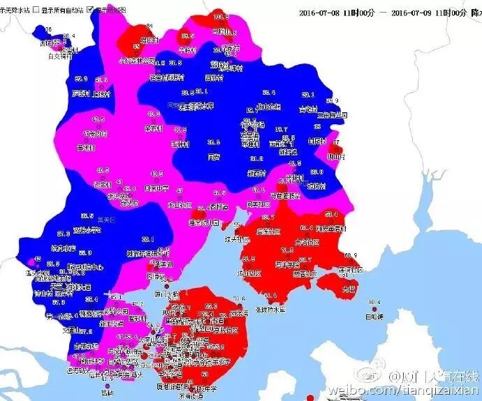 @廈門(mén)天氣在線:尼伯特”給我市帶來(lái)的降雨,截止11時(shí),我市普遍達(dá)到了大雨到暴雨的量級(jí),最大出現(xiàn)在同安云頂山104.8mm(大暴雨);我市共有118個(gè)自動(dòng)站,其中1個(gè)站≥100mm(大暴雨),45個(gè)站≥45mm(暴雨及以上), 112個(gè)站≥25mm(大雨及以上)。