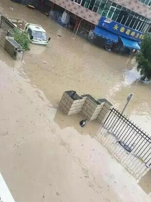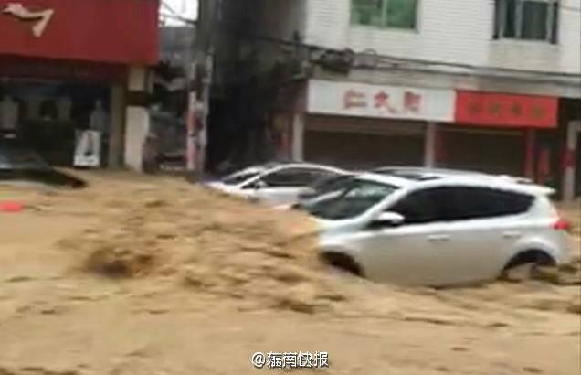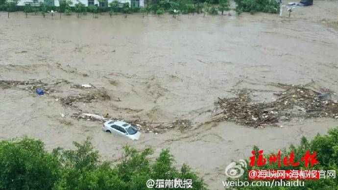 閩清坂東湖頭街,車被洪水沖走了。
