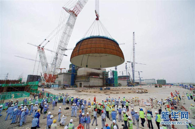 2017年5月25日,福清核電5號機(jī)組在進(jìn)行穹頂?shù)跹b。(新華社記者 姜克紅 攝)