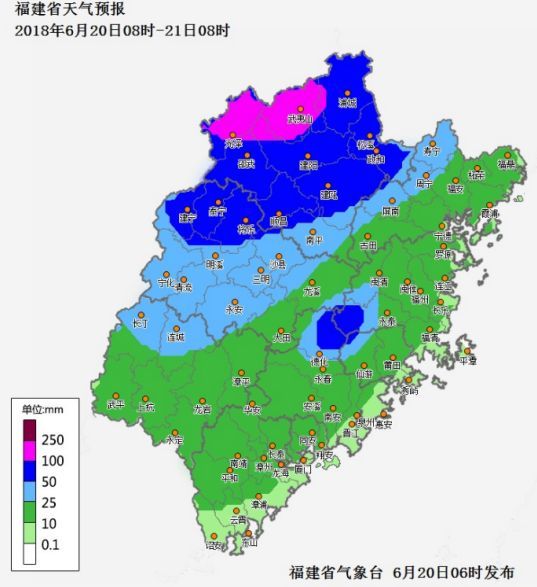 福州、莆田、南平和寧德部分有暴雨,局部大暴雨,三明和泉州局部有暴雨,其余地區(qū)局部有大雨到暴雨。