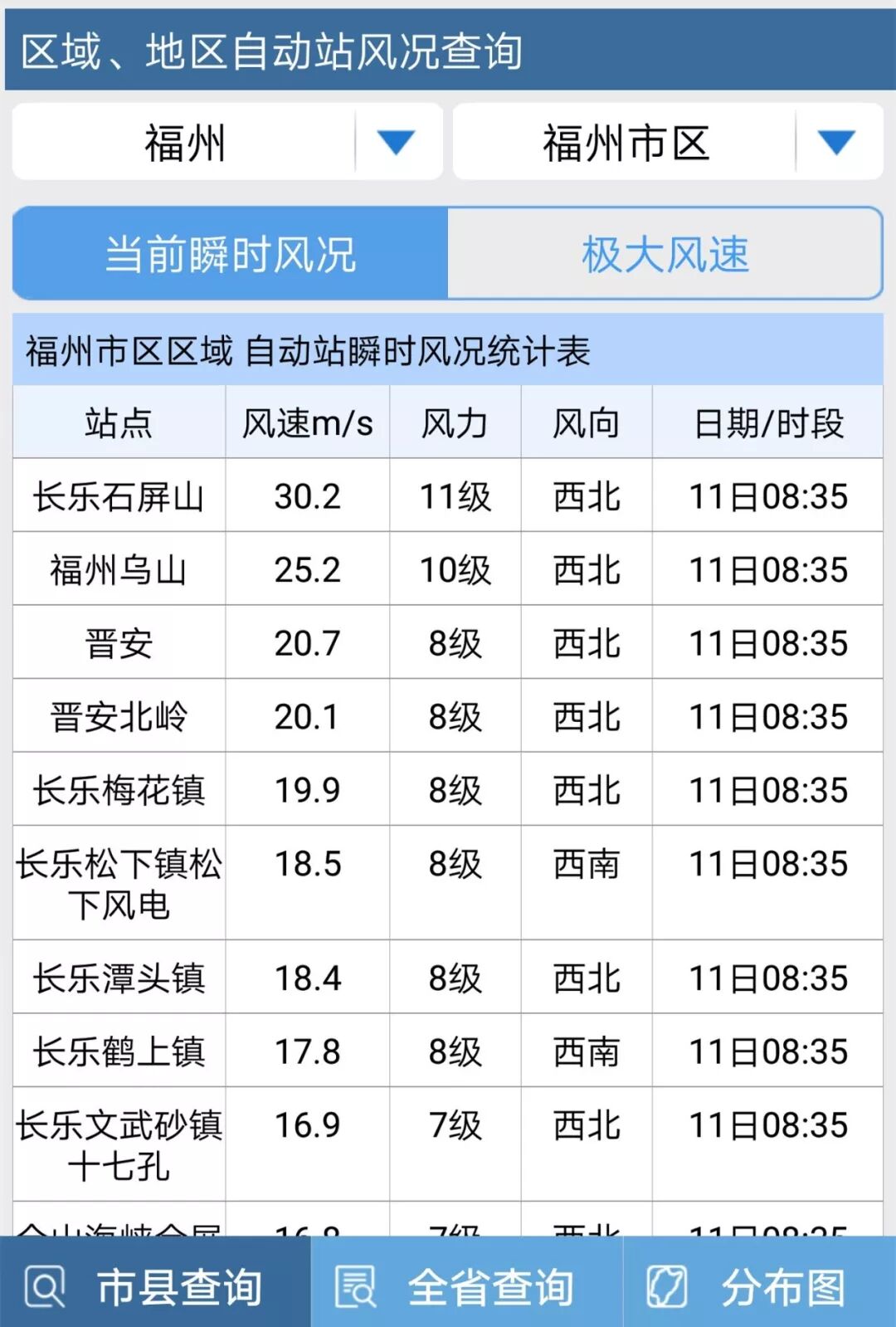 福州市區(qū)現(xiàn)在的風(fēng)到底多大?