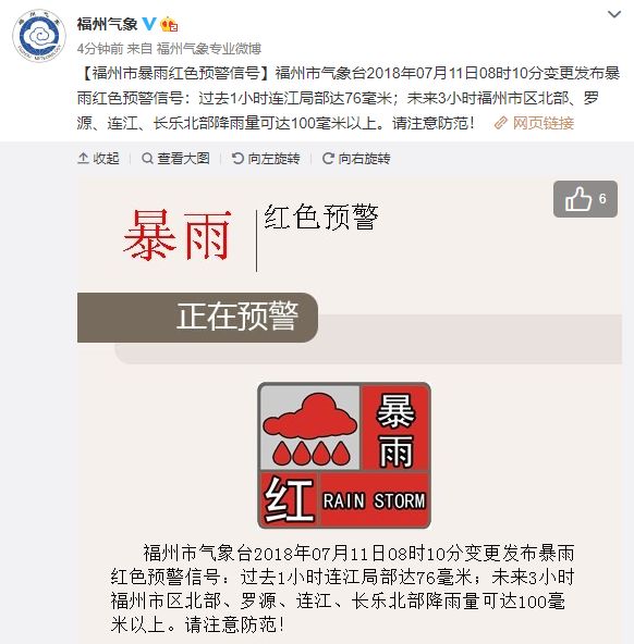 市氣象臺(tái)已經(jīng)發(fā)布暴雨紅色預(yù)警!