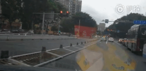 行駛路上的出租車(chē)被吹得東倒西歪?。壳叭砍鲎廛?chē)已經(jīng)停運(yùn)?。?/span>