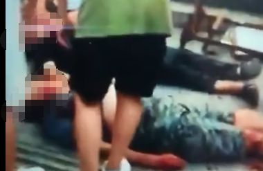 被砸傷的男子,醫(yī)生在幫忙包扎(王女士供圖)