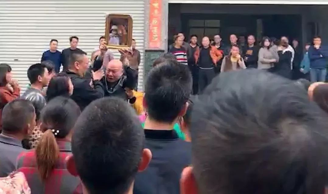 當(dāng)嫌疑人剛經(jīng)過(guò)受害者家里時(shí),受害者的父親情緒就失控了,向著嫌疑人沖過(guò)來(lái),被隨行特警攔住了。受害者父親悲痛萬(wàn)分,將女兒和外孫女的合影遺照高舉哭訴。