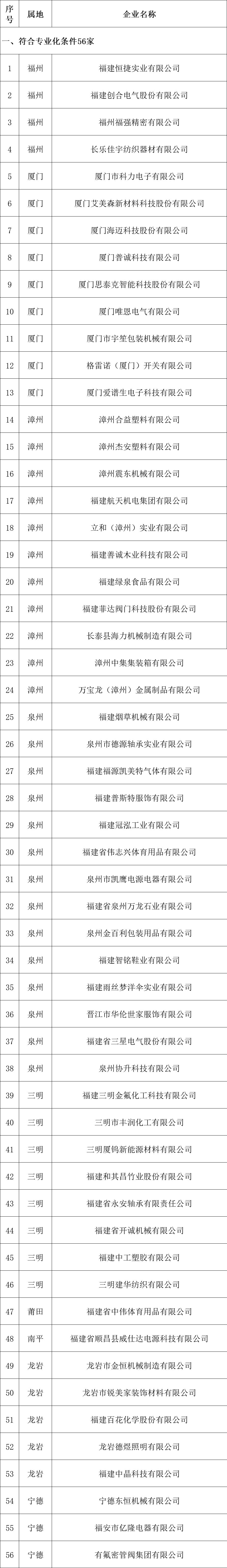 日前,經(jīng)企業(yè)自愿申報、設(shè)區(qū)市審核推薦、福建省工信廳審核并公示后,128家企業(yè)被認(rèn)定為2019年第二批福建省“專精特新”中小企業(yè)。