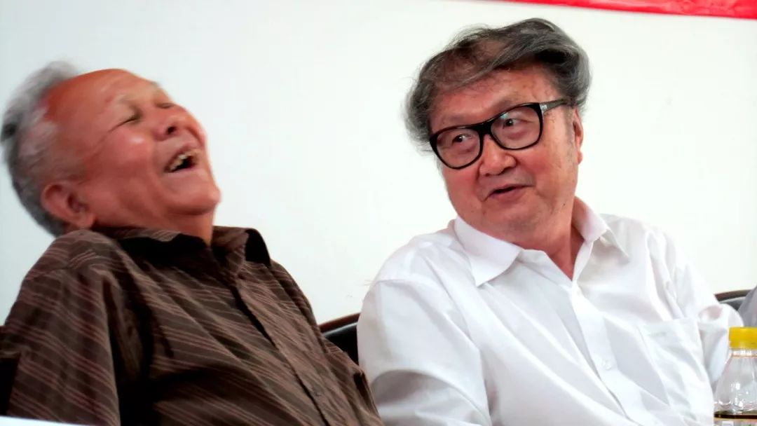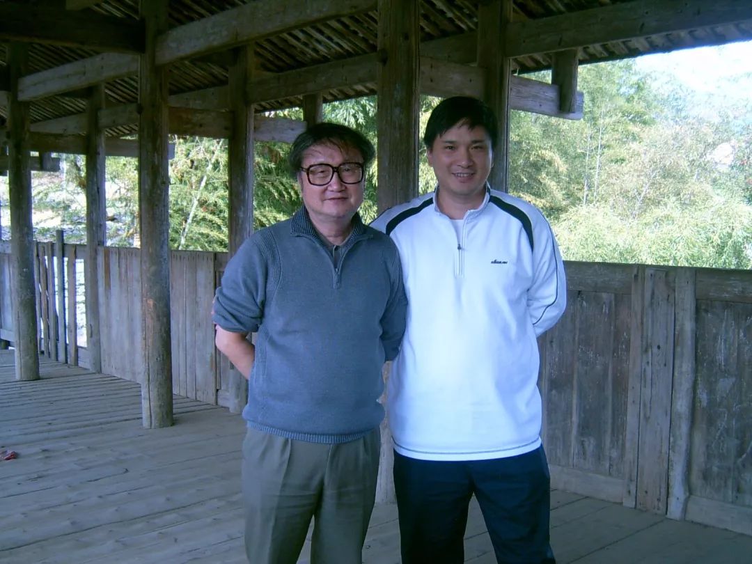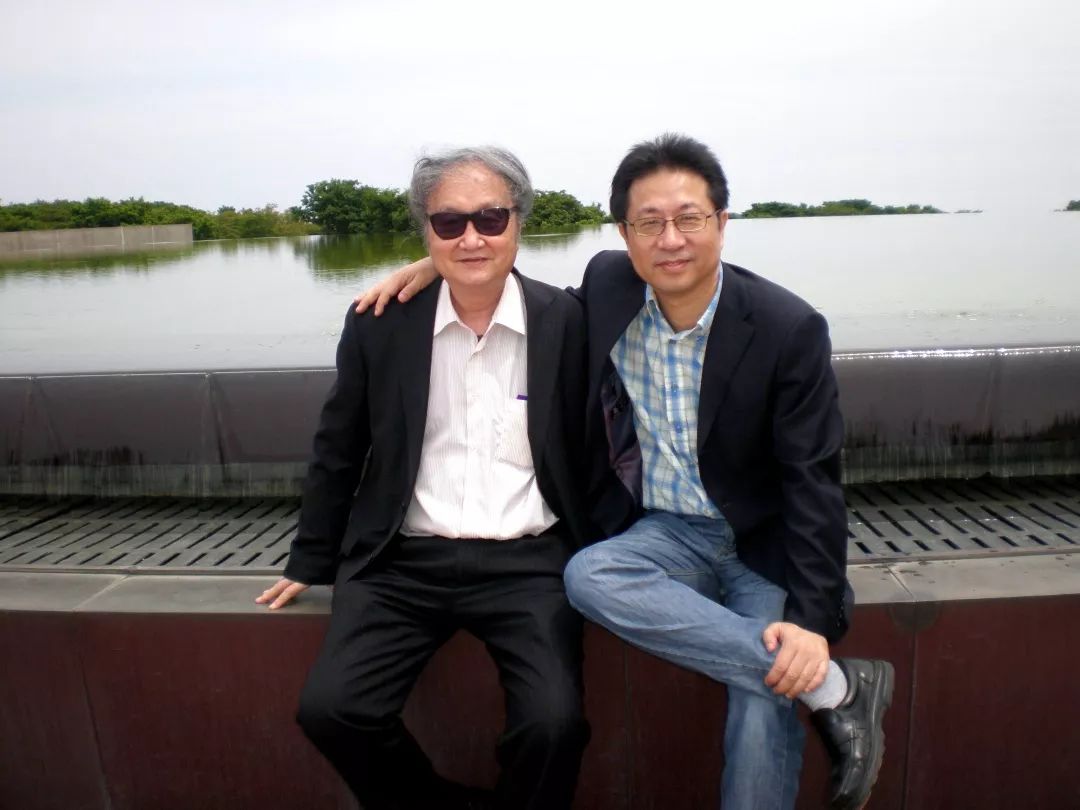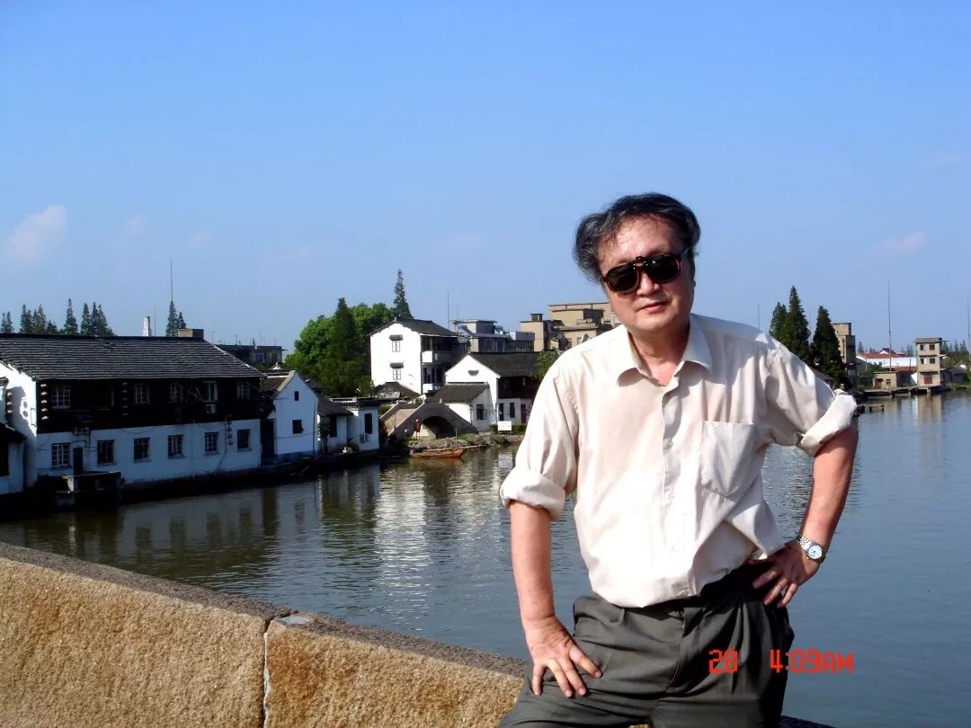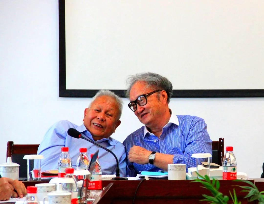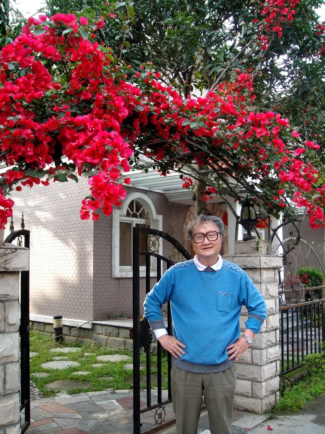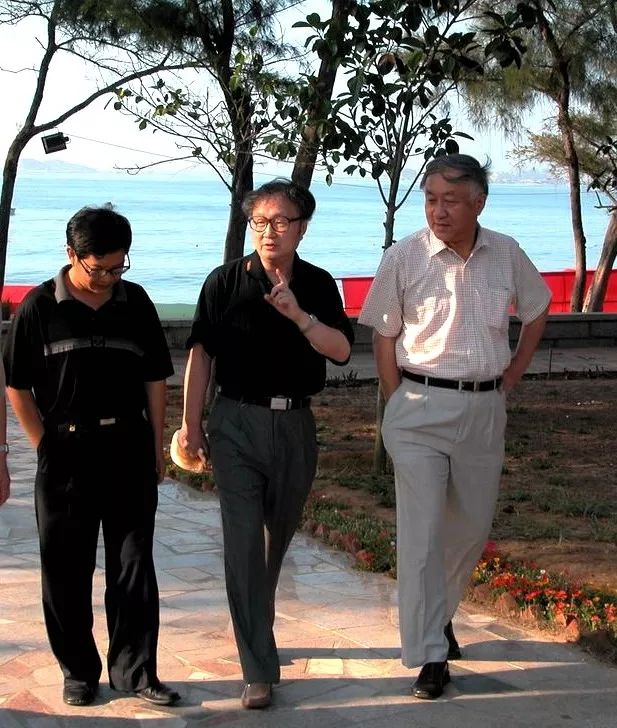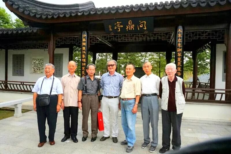 中學(xué)同學(xué)在母校上海昆山學(xué)校內(nèi)聚會(huì),背后“問(wèn)鼎亭”三字系孫紹振先生所題