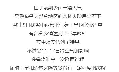 我省中北部地區(qū)的森林火險(xiǎn)氣象等級(jí)將有望得到緩解