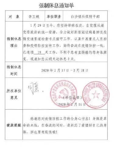 一張《強制休息通知單》: