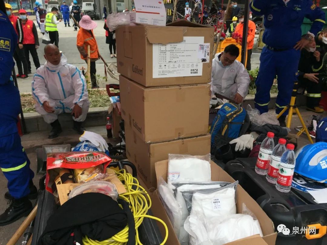 藍天救援隊帶了防護服和一次性口罩到達現(xiàn)場,該隊有100多人到現(xiàn)場參與施救。