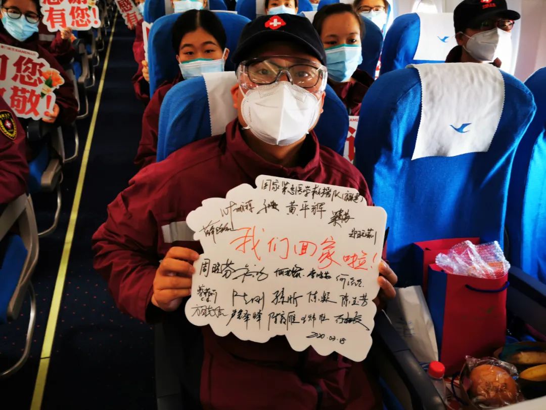 “MF8768,我們向飛機(jī)上醫(yī)護(hù)人員致以崇高的敬意,歡迎回家!”
