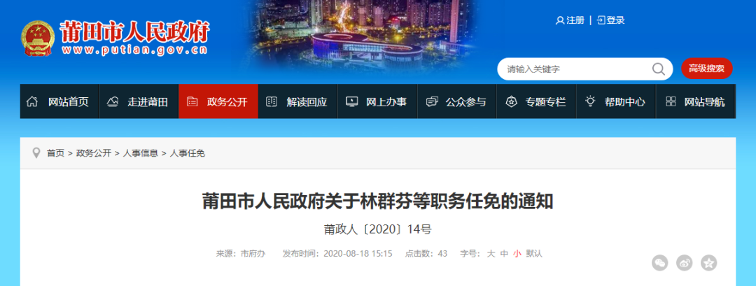 莆田市人民政府關(guān)于林群芬等職務(wù)任免的通知