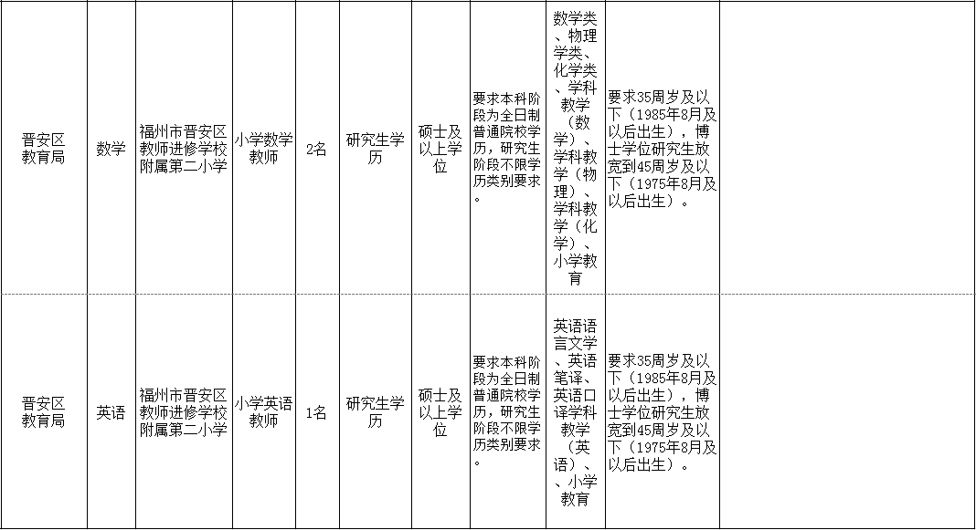 福州市晉安區(qū)教師進(jìn)修學(xué)校附屬第二小學(xué)擬專項(xiàng)招聘碩士研究生及以上學(xué)歷教育人才10名