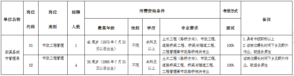 泉州市安溪縣城市管理局招聘5名編外工作人員