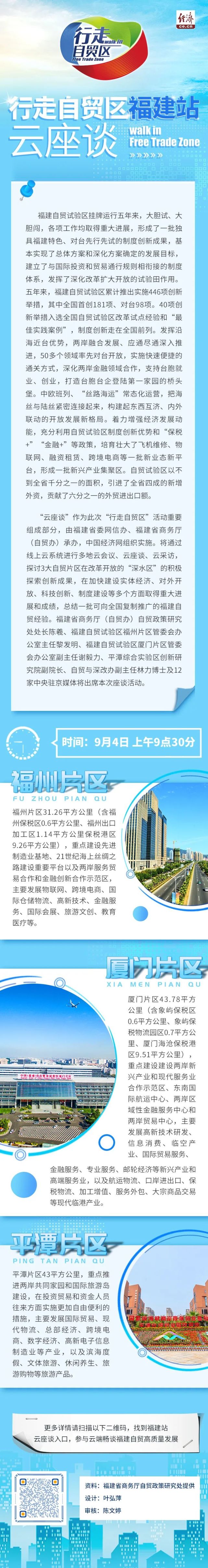 “云座談”作為此次“行走自貿(mào)區(qū)”活動(dòng)重要組成部分,由福建省委網(wǎng)信辦、福建省商務(wù)廳(自貿(mào)辦)承辦,中國(guó)經(jīng)濟(jì)網(wǎng)組織實(shí)施。將通過線上云系統(tǒng)進(jìn)行多地云會(huì)議、云座談、云采訪,探討3大自貿(mào)片區(qū)在改革開放的“深水區(qū)”的積極探索創(chuàng)新成果,在加快建設(shè)實(shí)體經(jīng)濟(jì)、對(duì)外開放、科技創(chuàng)新、制度建設(shè)等多個(gè)方面取得重大進(jìn)展和成績(jī),總結(jié)一批可向全國(guó)復(fù)制推廣的福建自貿(mào)經(jīng)驗(yàn)。福建省商務(wù)廳(自貿(mào)辦)自貿(mào)政策研究處處長(zhǎng)陳羲、福建自貿(mào)試驗(yàn)區(qū)福州片區(qū)管委會(huì)辦公室主任黎發(fā)明、福建自貿(mào)試驗(yàn)區(qū)廈門片區(qū)管委會(huì)辦公室副主任謝毅力、平潭綜合實(shí)驗(yàn)區(qū)創(chuàng)新研究院副院長(zhǎng)、自貿(mào)與深改辦副主任林力博士及12家中央駐京媒體將出席本次座談活動(dòng)。