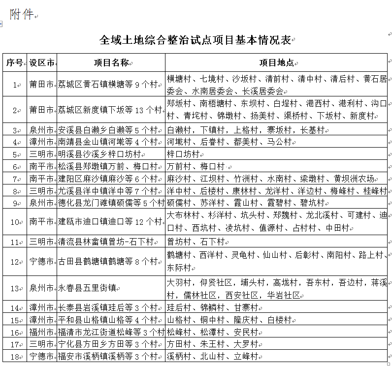 附件:福建省全域土地綜合整治試點(diǎn)項(xiàng)目情況表